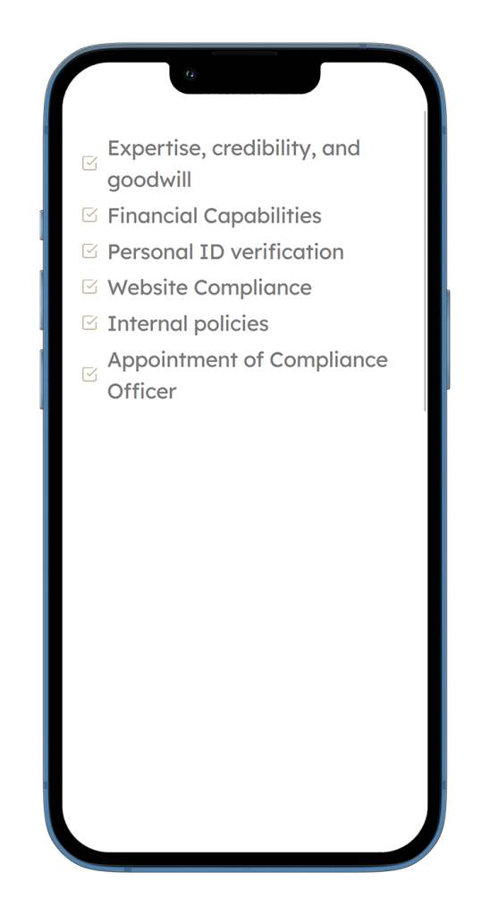 6. Undergo thorough background checks to ensure compliance with legal and ethical standards. The regulatory authority conducts due diligence and a background check on all personnel connected with the applicant