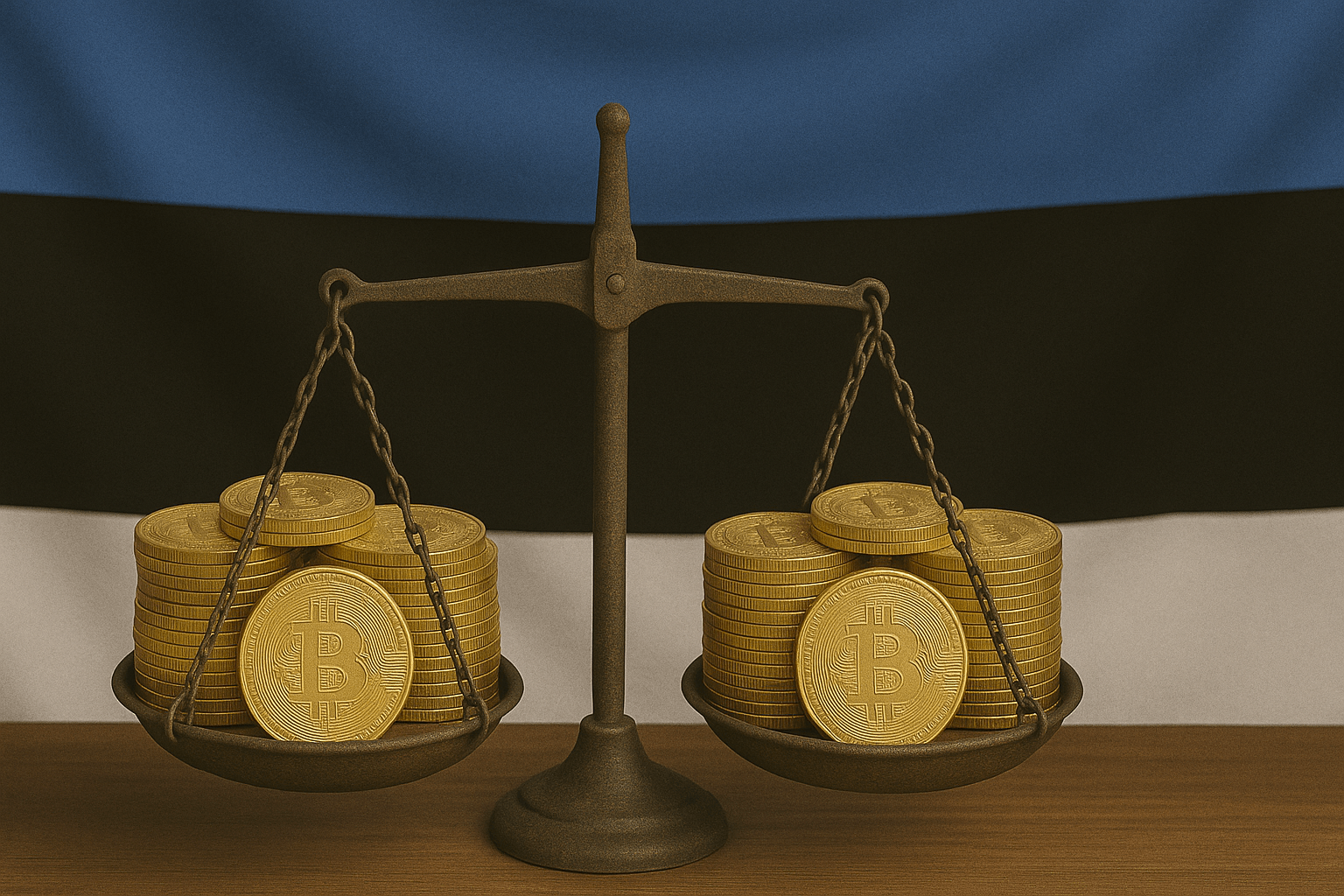 "Estonia crypto regulation concept with Bitcoin on balance scales